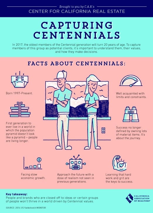 We have been talking about Millennials for a while now, and next up are the Centennials. The Centennials were born from 1997 to the present, and they have grown up a little differently, living through two large recessions. They have a different worldview as a result of the time they came of age, valuing experiences over things, having constraints growing up, and growing up learning that hard work and grit are important.